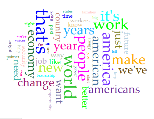 The main takeaway I got from Obama's word cloud is that his main ideas center around families, community, the working class, the future, and change. Its very clear once all of the filler words are removed by Voyant Tools compared to AntConc.